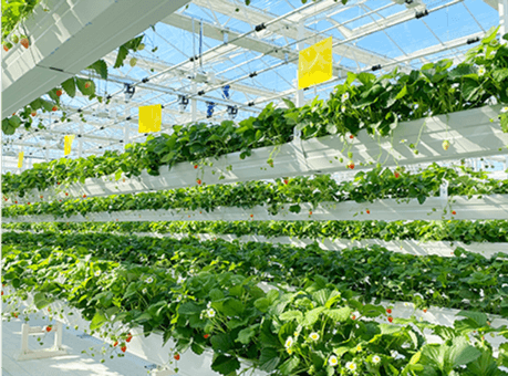 栽培系統(tǒng):草莓天瀑系統(tǒng)、高H架高架栽培系統(tǒng)、雙H架高架栽培系統(tǒng)、 草莓天瀑與矮H架復(fù)式栽培等;