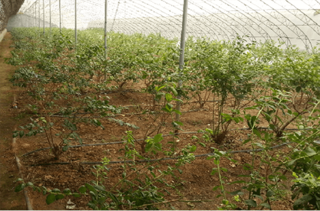 華維研究院針對藍莓作物生長特性定制化打造適配 藍莓的專用溫室,具有通風面積大,透光率高,不 易生銹,安裝便捷,靈活性高等優(yōu)點,保障藍莓健 康生長。生產(chǎn)中結合藍莓品種、溫室環(huán)控及水肥管 理,可大幅提前藍莓成熟時期,增加收益。