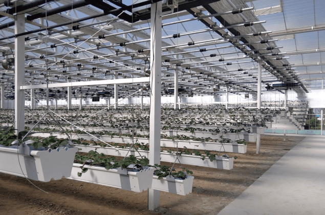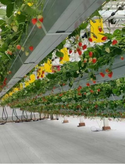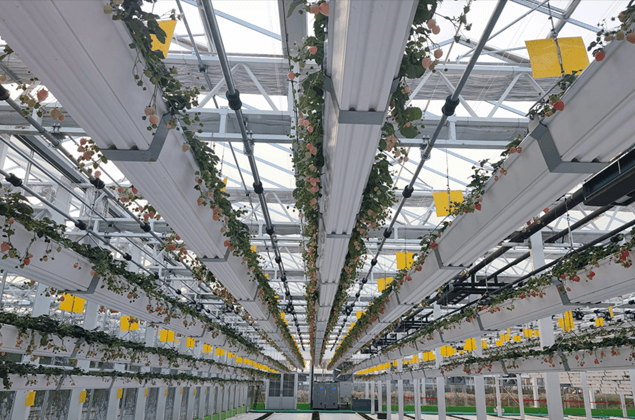 草莓生長(zhǎng)期間空氣相對(duì)濕度應(yīng)控制在70%--90%之間。夜間空氣相對(duì)濕度一般控制在85%--90%,濕度過大易滋生病害,可以適當(dāng)保持一定的通風(fēng)量,白天空氣相對(duì)濕度一般控制在75%--80%,濕度過低會(huì)抑制植株蒸騰作用,相對(duì)濕度較低時(shí)可以開啟彌霧系統(tǒng)進(jìn)行增濕;