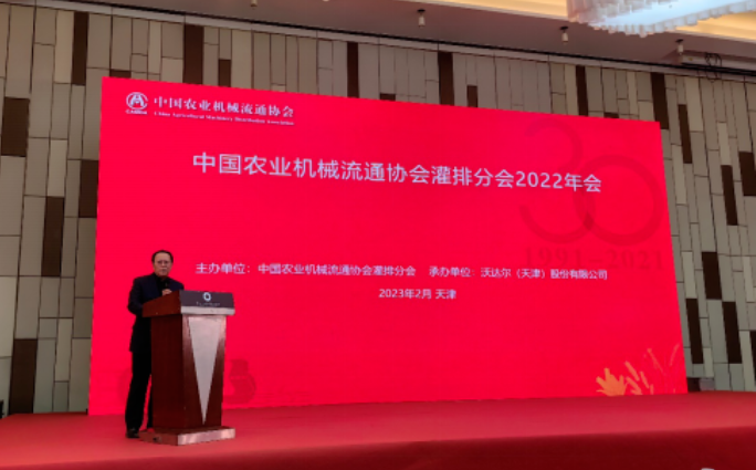 2023年2月18日,由中國農(nóng)業(yè)機械流通協(xié)會灌排分會主辦,沃達爾承辦的灌排分會2022年會在天津成功舉辦,共有來自全國各地的近300位代表參加本次會議。中國農(nóng)業(yè)機械流通協(xié)會會長范建華、副會長兼秘書長陳濤出席本次會議并講話。