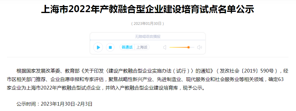 近日,根據(jù)國家發(fā)展改革委、教育部《關(guān)于印發(fā)〈建設(shè)產(chǎn)教融合型企業(yè)實(shí)施辦法(試行)〉的通知》(發(fā)改社會〔2019〕590號),經(jīng)市區(qū)相關(guān)部門推薦 、企業(yè)自愿申報(bào)和專家評估,聚焦戰(zhàn)略性新興產(chǎn)業(yè)、先進(jìn)制造業(yè)、現(xiàn)代服務(wù)業(yè)和社會服務(wù)業(yè)等相關(guān)領(lǐng)域,確定63家企業(yè)為上海市2022年產(chǎn)教融合型試點(diǎn)企業(yè),并納入產(chǎn)教融合型企業(yè)建設(shè)培育庫。