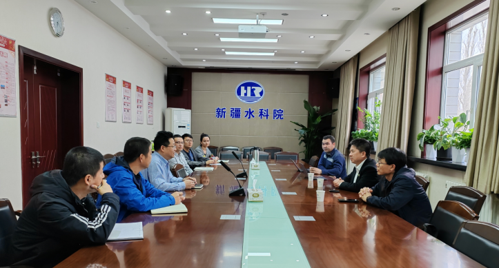 在與新疆水利水電科學(xué)研究院(下簡稱研究院)團(tuán)隊(duì)交流中,研究院黨委書記張江輝、副院長聶新山和白云崗、研發(fā)中心主任崔春亮等,與華維團(tuán)隊(duì)就科研項(xiàng)目合作、相關(guān)水利新產(chǎn)品的研發(fā)和成果轉(zhuǎn)化,及新疆地區(qū)水資源高效利用等層面展開深入研討。