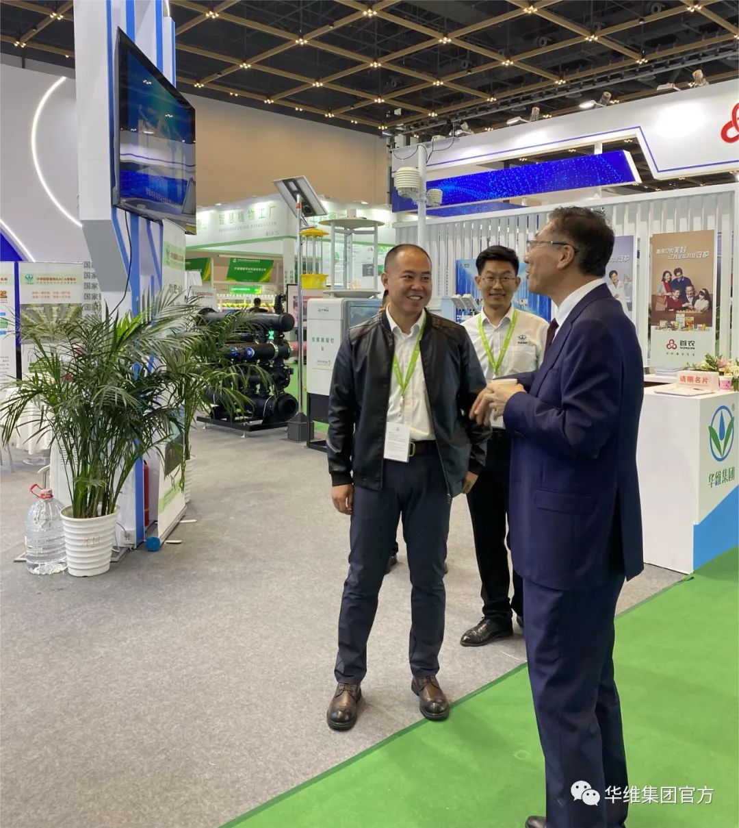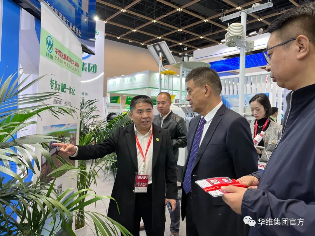 上海市農(nóng)業(yè)科技服務(wù)中心主任沈悅(右一)蒞臨華維集團(tuán)展館參觀指導(dǎo)