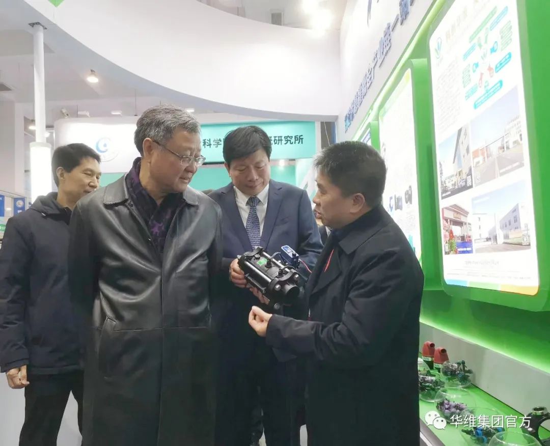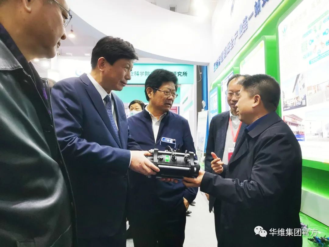 董事長呂名禮(右一)向李衛(wèi)東(左二)、梅旭榮(左三)等領(lǐng)導(dǎo)介紹華維產(chǎn)品