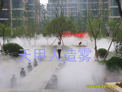 由于開盤在即,時間非常緊迫,加之連續(xù)幾天的暴雨,給施工造成了極大的困難。然而天甲景觀充分組織優(yōu)秀的技術(shù)力量,合理安排,輪班作業(yè),在短短的一周內(nèi)即完成了多套造霧系統(tǒng)的整個施工調(diào)試。