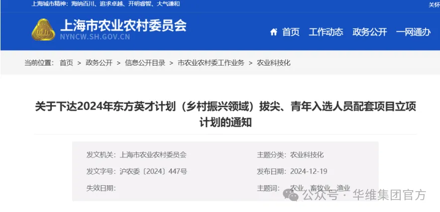 近日,上海市人才工作局發(fā)布2024年上海市東方英才計劃鄉(xiāng)村振興領(lǐng)域青年項目人員名單,華維研究院常務(wù)副院長張中華成功入選(序號16,見文末)。