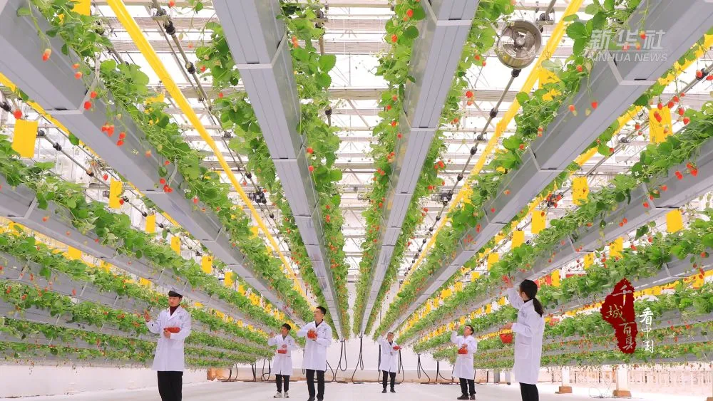 走進(jìn)華維農(nóng)裝智谷·東安谷(華維集團(tuán)湖南子公司)中試中心,員工們正在忙著采收草莓和番茄。