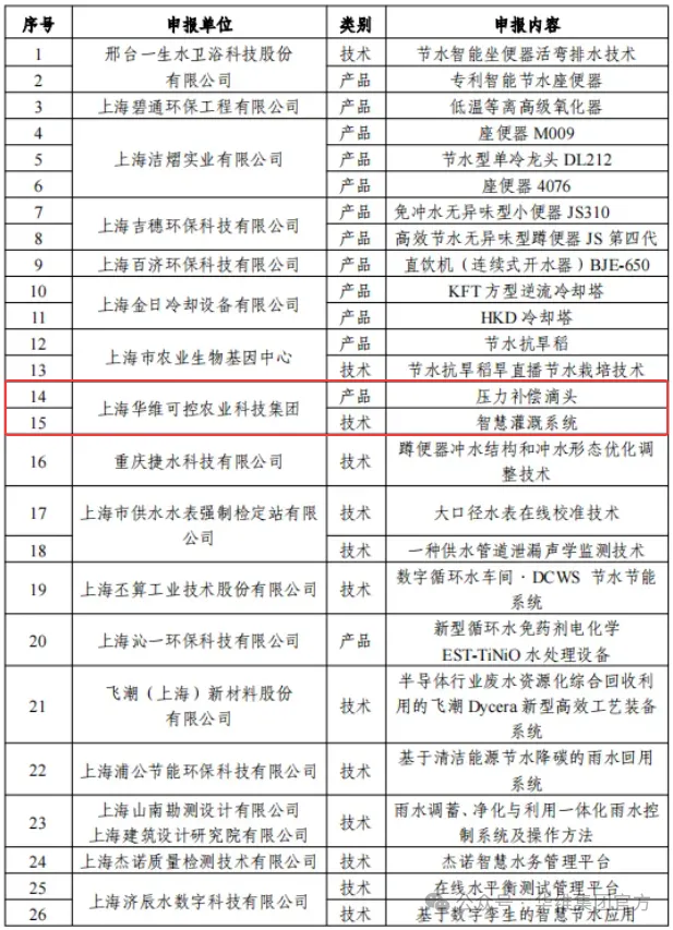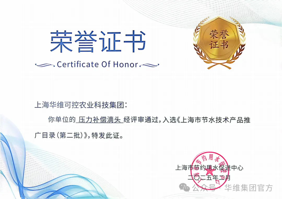 為貫徹落實(shí)《國家節(jié)水行動(dòng)方案》目標(biāo)任務(wù),促進(jìn)節(jié)水技術(shù)產(chǎn)品推廣應(yīng)用,上海市供水管理事務(wù)中心(上海市節(jié)約用水促進(jìn)中心)、上海市能效中心(上海市產(chǎn)業(yè)綠色發(fā)展促進(jìn)中心)組織開展了《上海市節(jié)水技術(shù)產(chǎn)品推廣目錄(第二批)》的征集和評(píng)審工作,華維智慧灌溉系統(tǒng)和壓力補(bǔ)償?shù)晤^等節(jié)水技術(shù)產(chǎn)品通過了評(píng)審,入選《上海市節(jié)水技術(shù)產(chǎn)品推廣目錄(第二批)》名單。