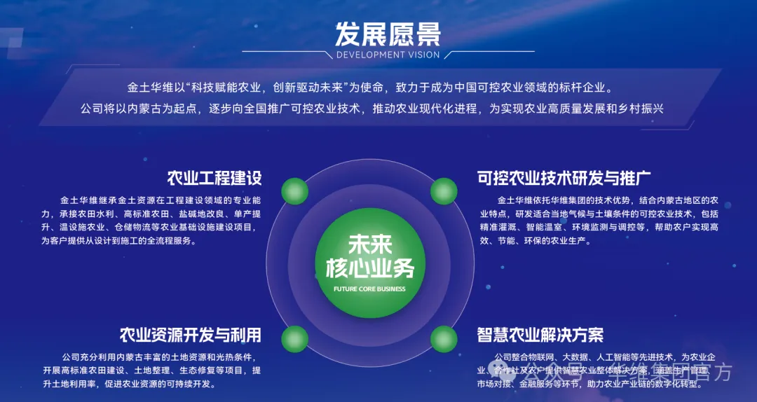 未來三年,金土華維將重點服務(wù)通遼及周邊千萬畝高標(biāo)準(zhǔn)農(nóng)田,通過智慧灌溉、可控農(nóng)業(yè)等系統(tǒng)化服務(wù),全面貫徹習(xí)近平總書記“節(jié)水優(yōu)先、空間均衡、系統(tǒng)治理、兩手發(fā)力”的治水思路,落實自治區(qū)黨委十一屆九次全會暨全區(qū)經(jīng)濟工作會議部署要求,大力實施節(jié)水行動,助力地方政府實現(xiàn)“藏糧于技、藏糧于地”的戰(zhàn)略目標(biāo)。加之鹽堿地改良、單產(chǎn)提升、設(shè)施農(nóng)業(yè)等可控農(nóng)業(yè)綜合服務(wù),為區(qū)域農(nóng)業(yè)升級提供了可信賴的解決方案,立足內(nèi)蒙、輻射全國推廣可控農(nóng)業(yè)技術(shù),推動農(nóng)業(yè)現(xiàn)代化進程,也標(biāo)志著華維集團科創(chuàng)實業(yè)平臺在服務(wù)國家糧食安全戰(zhàn)略中再添重要據(jù)點。
