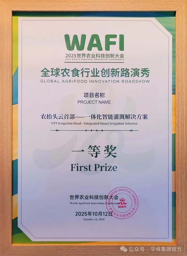 10月12日,2025世界農(nóng)業(yè)科技創(chuàng)新大會(WAFI)全球農(nóng)食行業(yè)創(chuàng)新路演秀大會專場圓滿落幕。華維集團路演的農(nóng)抬頭云首部一體化智能灌溉解決方案(第四場路演,光明網(wǎng)直播超40萬關(guān)注,農(nóng)抬頭云首部廣受好評,得到與會評委專家一致點贊),從100余個參賽團隊中目脫穎而出,榮獲一等獎。