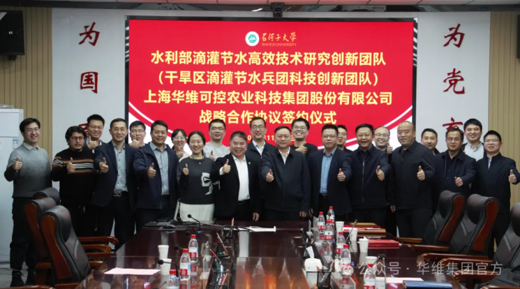 近日,華維集團(tuán)與水利部滴灌節(jié)水高效技術(shù)研究創(chuàng)新團(tuán)隊(duì)(干旱區(qū)滴灌節(jié)水兵團(tuán)科技創(chuàng)新團(tuán)隊(duì),下簡稱水利部創(chuàng)新團(tuán)隊(duì))戰(zhàn)略合作協(xié)議簽約儀式在新疆生產(chǎn)建設(shè)兵團(tuán)第八師石河子市舉行。石河子市發(fā)改委、水利局相關(guān)領(lǐng)導(dǎo),石河子大學(xué)水利建筑工程學(xué)院師生代表,華維集團(tuán)董事長呂名禮及相關(guān)核心管理團(tuán)隊(duì)共同見證了這一行業(yè)盛事。水利部創(chuàng)新團(tuán)隊(duì)負(fù)責(zé)人王振華教授主持了簽約儀式,受聘擔(dān)任華維研究院及上海節(jié)水灌溉工程技術(shù)研究中心專家委員會(huì)副主任。