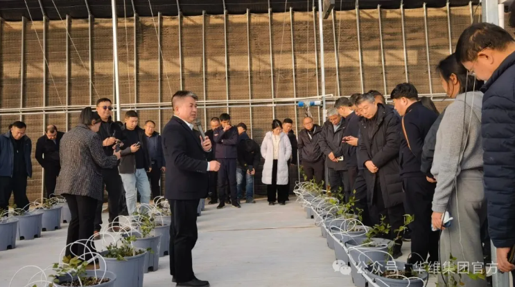 2025年9月,習近平總書記出席新疆維吾爾自治區(qū)成立70周年慶?;顒訒r強調(diào),要完整準確全面貫徹新時代黨的治疆方略,錨定黨中央賦予的“五大戰(zhàn)略定位”,建設(shè)社會主義現(xiàn)代化新疆。 為深入學習貫徹習近平總書記關(guān)于新疆工作的重要指示,落實對口援疆部署要求,發(fā)揮南疆資源稟賦和區(qū)域優(yōu)勢,搶抓數(shù)字化、智能化、綠色化機遇,加快實施“人工智能+”行動,因地制宜發(fā)展新質(zhì)生產(chǎn)力,促進農(nóng)民群眾持續(xù)增收和充分就業(yè),進一步鞏固拓展脫貧攻堅成果,農(nóng)業(yè)農(nóng)村部、新疆維吾爾自治區(qū)人民政府研究制定了《推動南疆現(xiàn)代設(shè)施農(nóng)業(yè)高質(zhì)量發(fā)展工作方案》,并于11月27日-28日在和田市召開“南疆現(xiàn)代設(shè)施農(nóng)業(yè)高質(zhì)量發(fā)展研討會”,科學布局打造現(xiàn)代設(shè)施農(nóng)業(yè)產(chǎn)業(yè)帶,推進鄉(xiāng)村全面振興。27日下午,農(nóng)業(yè)農(nóng)村部黨組成員黃艷,新疆維吾爾自治區(qū)政府副主席王剛,新疆生產(chǎn)建設(shè)兵團黨委、兵團副秘書長范元書,中央統(tǒng)戰(zhàn)部八局副局長戴東平,農(nóng)業(yè)農(nóng)村部區(qū)域協(xié)作促進司司長李富君,中國農(nóng)業(yè)科學院黨組成員、副院長曹永生,各省市對口援疆相關(guān)部門領(lǐng)導(dǎo)、設(shè)施農(nóng)業(yè)相關(guān)企業(yè)代表等參會人員前往新疆農(nóng)牧投集團墨玉縣戈壁設(shè)施農(nóng)業(yè)建設(shè)項目基地,考察華維集團規(guī)劃設(shè)計建造的新疆萬畝戈壁(沙漠)現(xiàn)代設(shè)施農(nóng)業(yè)項目之“ACA第六谷·藍莓谷”,調(diào)研以藍莓園整體解決方案搭建的現(xiàn)代設(shè)施農(nóng)業(yè)模式。新疆維吾爾自治區(qū)黨委農(nóng)辦主任、農(nóng)業(yè)農(nóng)村廳黨組書記謝映周,農(nóng)科院黨組副書記、副院長彭守創(chuàng),新疆農(nóng)牧投黨委書記、董事長趙德智,和田地區(qū)地委副書記張彤、農(nóng)業(yè)農(nóng)村局黨組書記黃碧云,墨玉縣委書記孔德建等陪同考察。該項目發(fā)揮國企資源與管理優(yōu)勢,放大民企市場及運營特長,構(gòu)建設(shè)施農(nóng)業(yè)全產(chǎn)業(yè)鏈,帶動南疆設(shè)施農(nóng)業(yè)集群式發(fā)展,打造沙漠設(shè)施農(nóng)業(yè)現(xiàn)代化發(fā)展、聯(lián)農(nóng)帶農(nóng)“示范標桿”。華維集團董事長呂名禮向考察團講解了項目建設(shè)情況。該項目導(dǎo)入華維ACA可控農(nóng)業(yè)(設(shè)施農(nóng)業(yè)+數(shù)字農(nóng)業(yè))模式,以藍莓產(chǎn)業(yè)為主導(dǎo)進行整體規(guī)劃,引入高品質(zhì)藍莓種苗,通過建設(shè)日光溫室、設(shè)施栽培系統(tǒng)、水肥一體化系統(tǒng)、環(huán)控系統(tǒng)等全體系生產(chǎn)配套,打造全疆藍莓高效生產(chǎn)基地、全疆出口藍莓示范種植基地、新疆藍莓產(chǎn)業(yè)技術(shù)體系核心示范點、技術(shù)裝備集成應(yīng)用示范基地,推進設(shè)施農(nóng)業(yè)全季生產(chǎn)、構(gòu)建具有新疆特色的現(xiàn)代農(nóng)業(yè)產(chǎn)業(yè)體系,力爭引領(lǐng)全疆設(shè)施農(nóng)業(yè)高質(zhì)量發(fā)展,以新裝備、新技術(shù)、新模式引領(lǐng)現(xiàn)代設(shè)施農(nóng)業(yè)發(fā)展新方向。