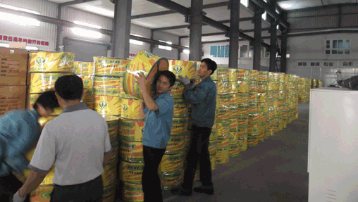 昨日由上海華維獨(dú)立研制生產(chǎn)的新型藍(lán)色軌道滴灌帶從華維奉浦工廠裝箱銷(xiāo)往西非,圖為華維工人正在為滴灌帶裝箱。