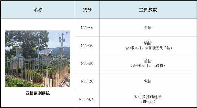 “四情” 是指利用物聯(lián)網(wǎng)技術(shù),動(dòng)態(tài)監(jiān)測(cè)田間作物的墑情、苗情、蟲情及病情的監(jiān)測(cè)預(yù)警系統(tǒng),由無(wú)線氣象墑情監(jiān)測(cè)站、苗情監(jiān)控?cái)z像頭、可視化智能蟲情測(cè)報(bào)燈、植物病菌孢子捕捉分析系統(tǒng)、預(yù)警預(yù)報(bào)系統(tǒng)、專家咨詢系統(tǒng)、用戶管理平臺(tái)組成。