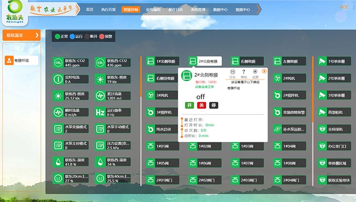 通過空氣溫濕度、光照、二氧化碳等目標(biāo)值來自動控制天窗、側(cè)窗、內(nèi)/外遮陽、風(fēng)機、濕簾、加溫設(shè)備、加濕除濕設(shè)備、二氧化碳發(fā)生器等設(shè)備的開啟關(guān)閉以及運行時間;