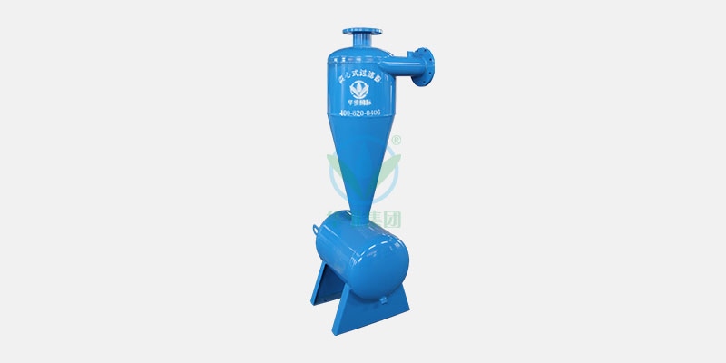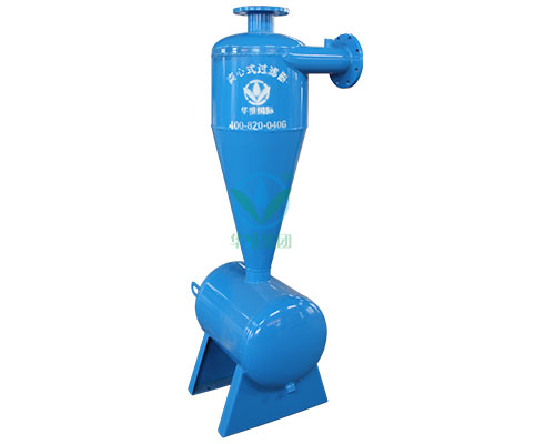 原水從直立的圓錐形罐體的側(cè)向(進水管)進水,在水流壓力的作用下做離心運動,推動泥沙及其它密度較高的固體顆粒向管壁移動,形成旋流,比重較大的砂粒落入過濾器底部橫置的沉砂罐、凈水從錐形罐體頂端(出水口)送出,即完成水砂分離。底部沉砂罐須定期進行清理,時間按當(dāng)?shù)厮|(zhì)情況而定。
